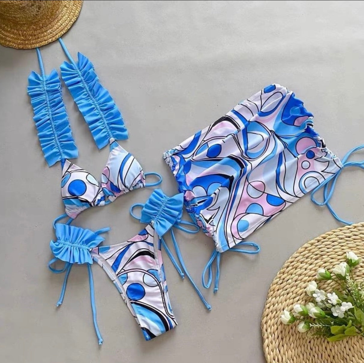 Baby blue 3 piece bikini set